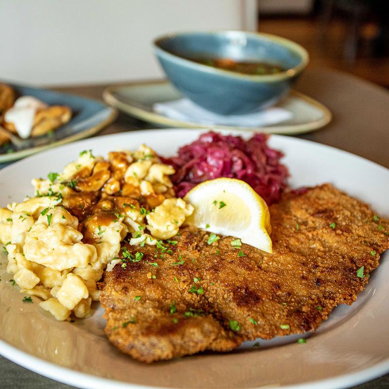 Amazing food! We ordered the pretzel w/ bacon cheese & pierogies for appetizers. Then wiener schnitzel , pork schnitzel, beef stroganoff & chicken paprikash...all were hot, fresh and delicious. The sides were delicious, as well...spätzle, red cabbage, noodles with cabbage and German potato salad...